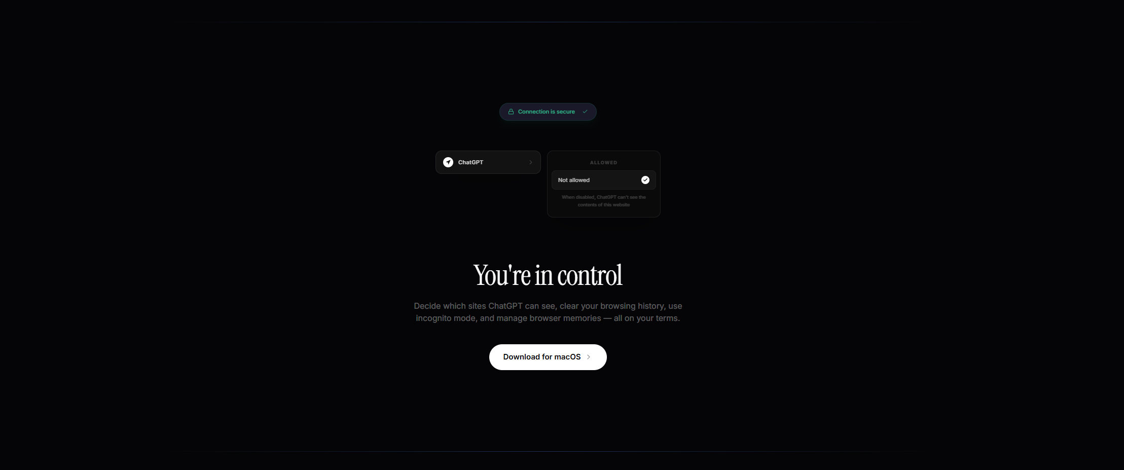 Letting AI see your browsing data is a big ask. So we made privacy the default. A visible security badge, per-site permissions, and one toggle to shut it all off. When people feel safe, they actually use the product.