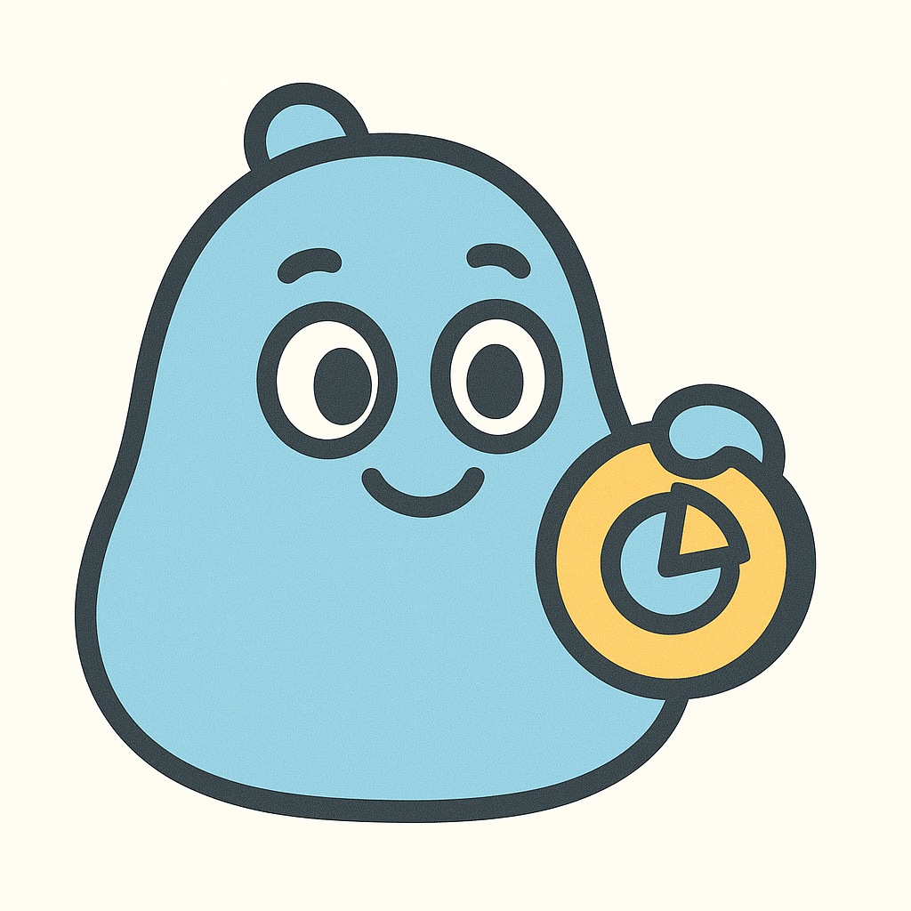 We designed a mascot first, icon second. The blue blob character is soft, round, and impossible to take too seriously. He holds a gold coin with a pie chart on it so you know what the app does without reading a single word. We created two variants: the base mascot for marketing and a glasses wearing version for the app store that gives him a studious personality. Thick outlines, flat color, and a cream background keep it legible at any size.